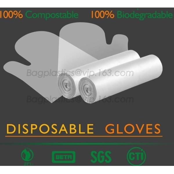 medical compostable disposable plastic gloves, EN13432 BPI OK compost home ASTM D6400 cheap Factory OEM biodegradable di Images |